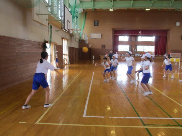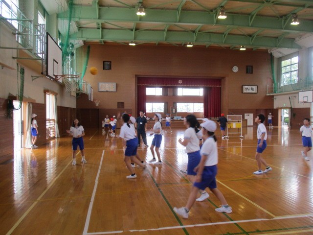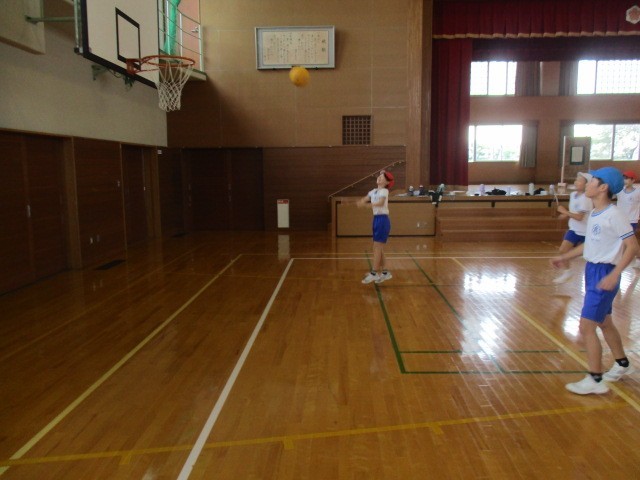 6年生の5時間目は、体育科の学習でした。体育館でバスケットボールをしていました。