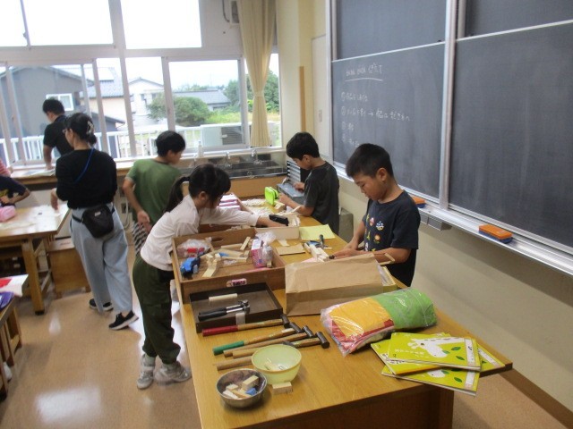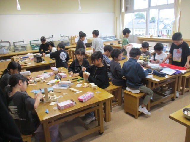 3年生の1時間目は、図画工作科の学習でした。くぎをうって木と木とつなげて何かをつくっていました。