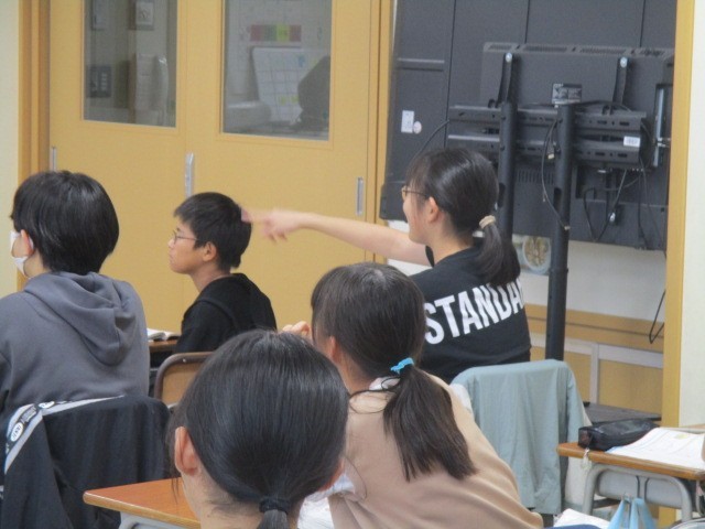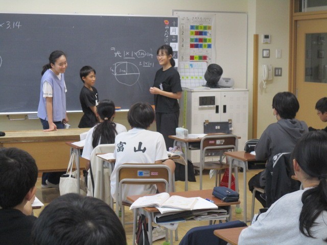 6年生の3時間目は、算数科の学習でした。円の面積と正方形の面積の関係について、話し合っていました。