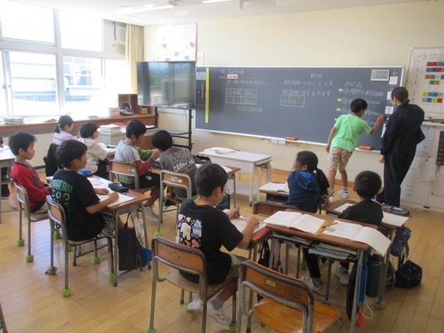 4年生の2時間目は、算数科の学習でした。およその数について考えていました。