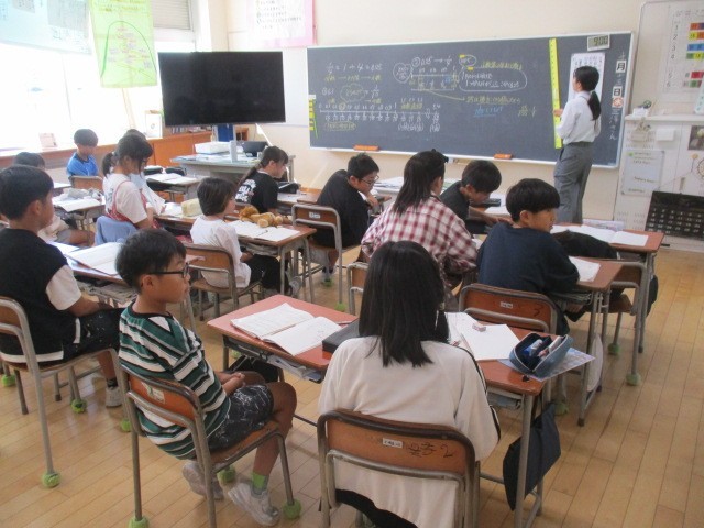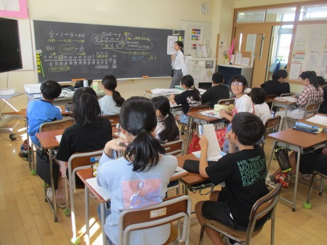 5年2組の3時間目は、算数科の学習でした。分数の10分の1や100分の1について考えていました。