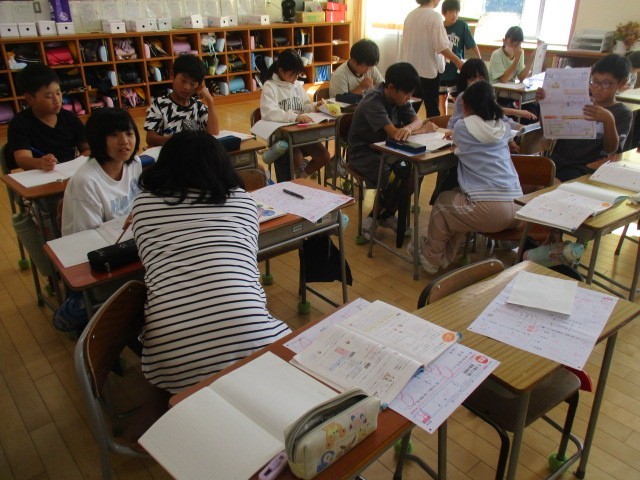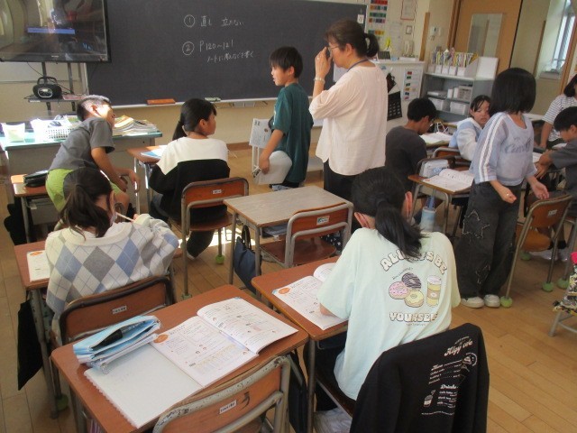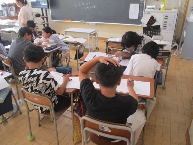 5年1組の5時間目は、算数科の学習でした。教科書の練習問題を進めていました。