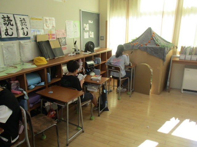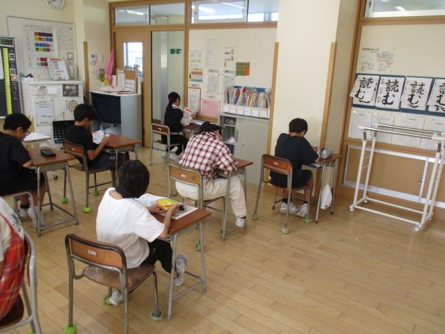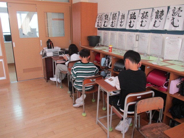 5年2組の5時間目は、テストでした。担任の先生が出張だったので、テストが終わった人から読書をしていました。