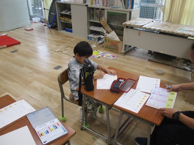 つばめ野級2組の1時間目は、国語科の学習でした。カタカナの練習や漢字の練習をプリントや漢字ドリルを使って行っていました。