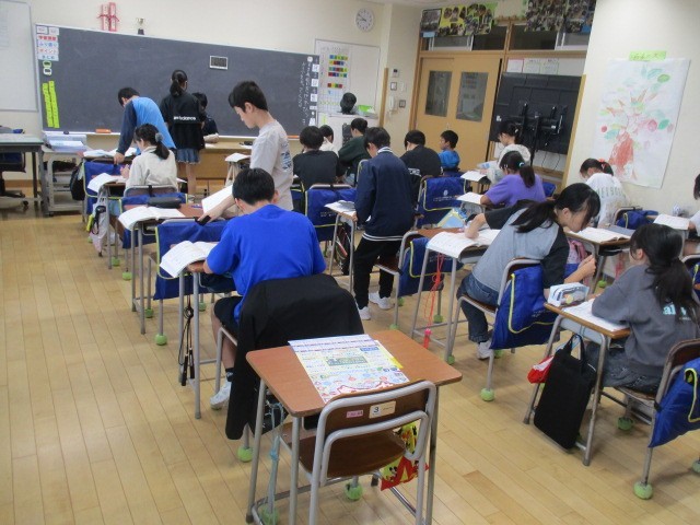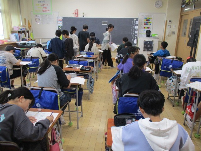 6年生の1時間目は、算数科の学習でした。「おぼえているかな」という教科書の練習問題を解いていました。