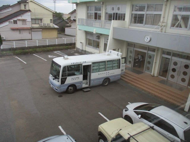 4年生は、3時間目に自動車文庫の本を借りていました。