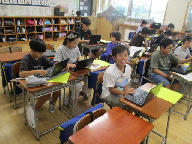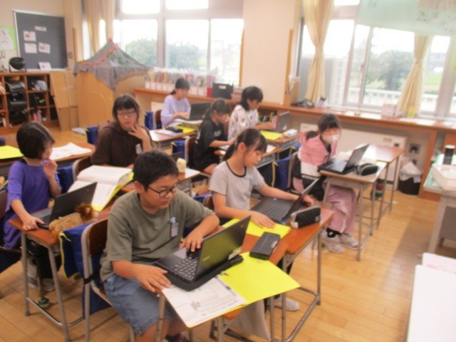 5年2組の3時間目は、総合的な学習の時間でした。お米について調べたいことを調べていました。