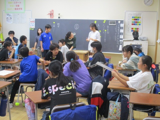 6年生は、5時間目に話合いをしていました。「こころの劇場」を見に行く際に八幡小学校の6年生と交流する予定が決まっており、実際にどんなことをしたらよいのかを考えていました。
