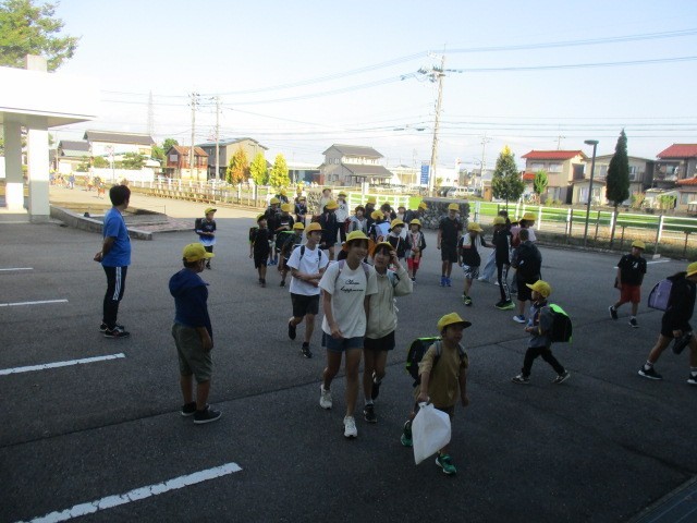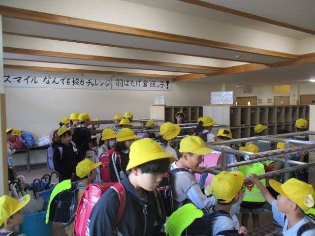 今朝の児童玄関の様子です。久しぶりに青空が見えます。子供たちの表情もにっこりが多かったです。
