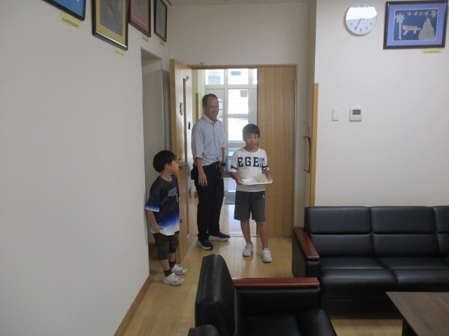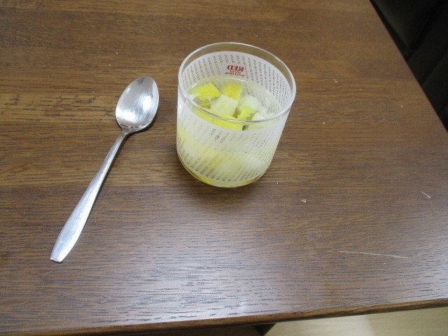 2時間目に校長室のドアをノックする音が聞こえたので開けてみると、つばめ野級2組の3人が中に入ってきました。調理実習でつくったフルーツポンチを「食べてください。」と、持ってきてくれました。ありがとうございます。とっても甘くておいしかったです。