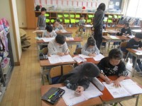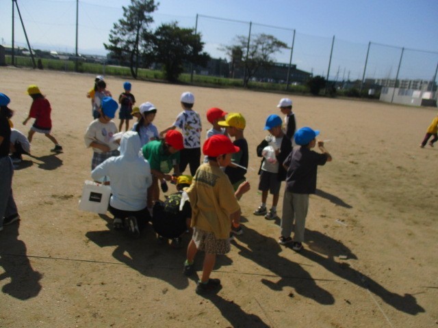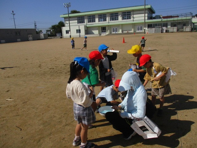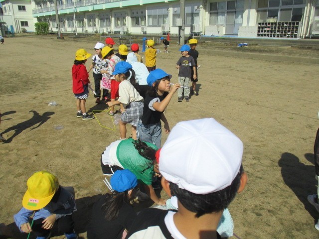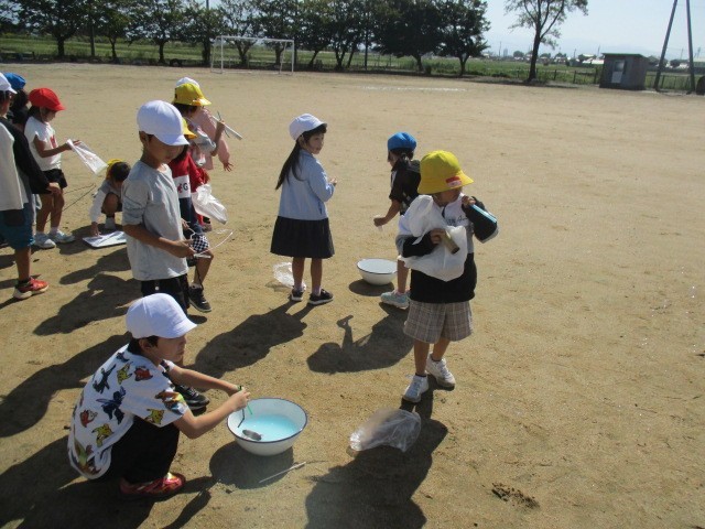 1年生の3時間目は、生活科の学習でした。グラウンドでシャボン玉をつくって楽しんでいました。