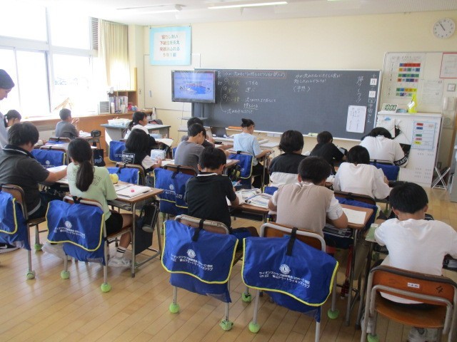 5年1組の3時間目は、理科の学習でした。川の流れる水の様子について考えていました。