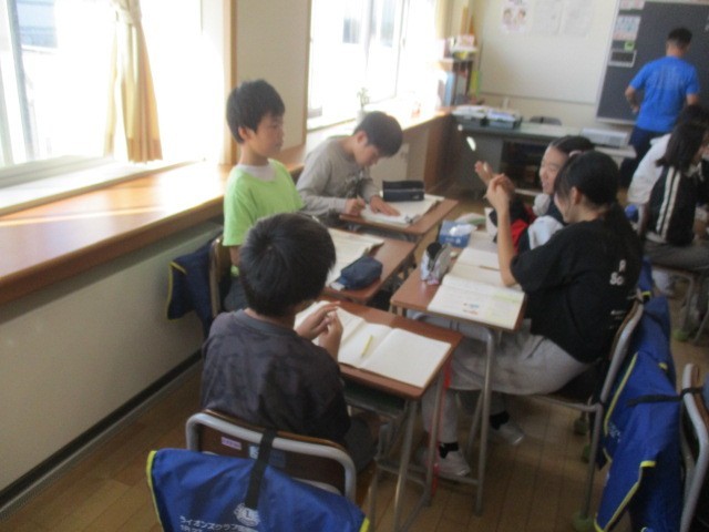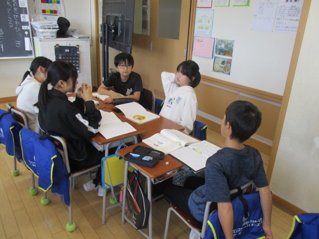 6年生の2時間目は、国語科の学習でした。「ハロウィンパーティーでどんな遊びをするか」について、グループの友達に自分の考えを主張していました。