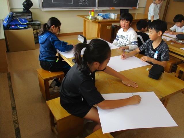 4年生の3時間目は、図画工作科の学習でした。「まぼろしの花」の絵をかいていました。