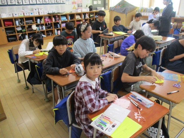 5年2組は、3時間目に就学時健診に向けての準備をしていました。来週ある就学時健診では、5年生が学校の代表として就学児童に接するので、その準備をしていました。