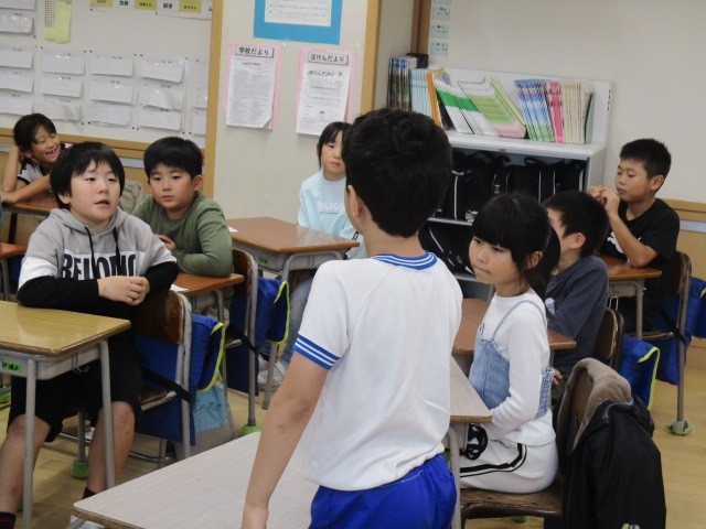 3年生の5時間目は、聞き合いの時間でした。友達の話を真剣に聞こうとしていました。