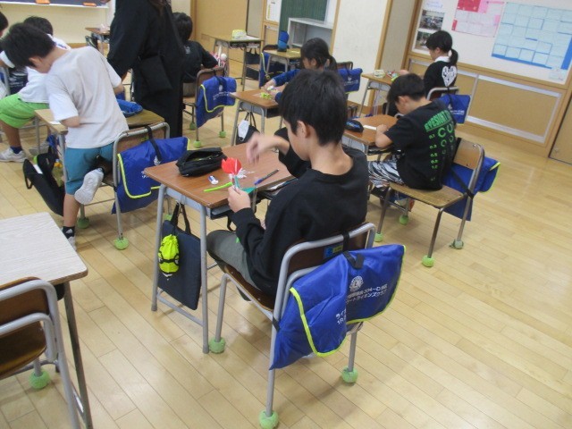 4年生の5時間目は、総合的な学習の時間でした。明日の福祉フェスティバルの準備を進めていました。