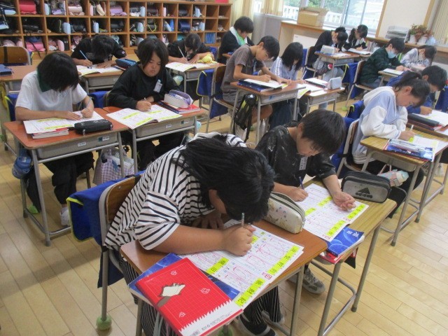 5年1組の5時間目は、国語科の学習でした。「基」「額」「故」という漢字の練習をしていました。