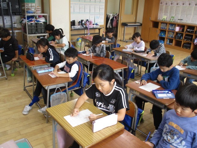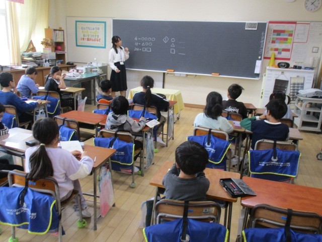 2年生の5時間目は、算数科の学習でした。「〇〇〇〇…4をあらわす。」「△〇〇…12をあらわす。」「□□…200をあらわす。」を考えていました。