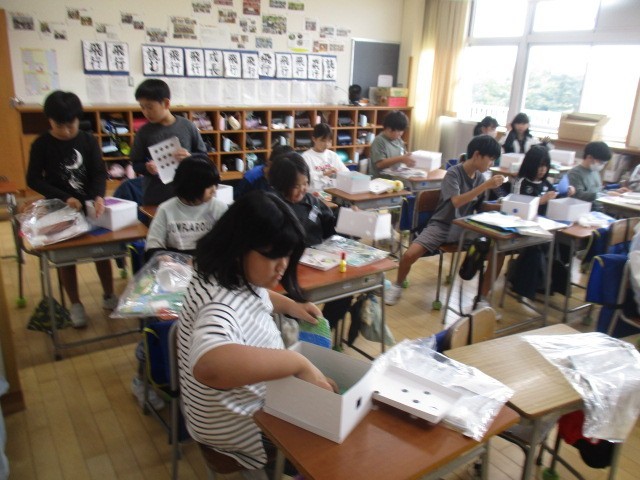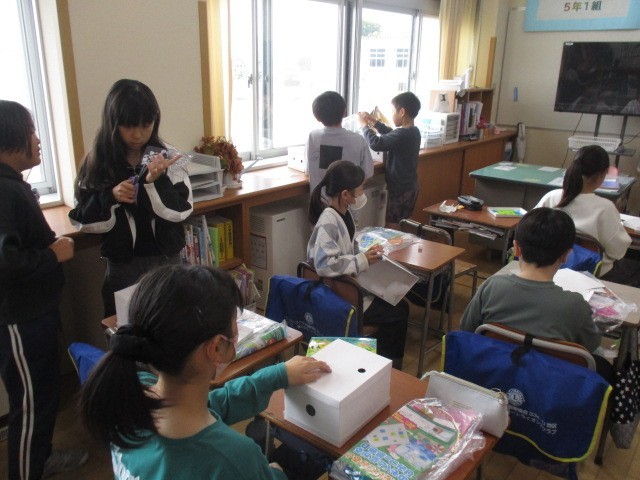 5年1組の5時間目は、図画工作科の学習でした。箱をのぞいて見えるふしぎなの世界をつくっていました。