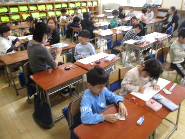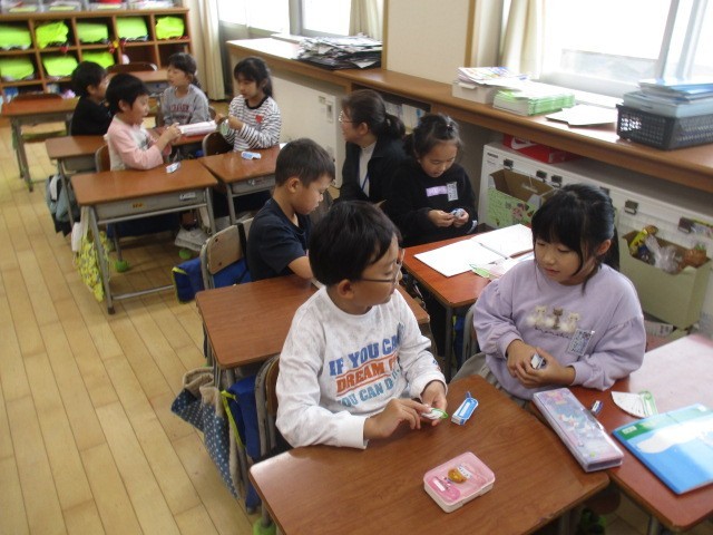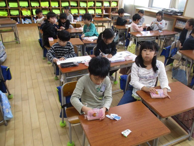 1年生の3時間目は、算数科の学習でした。計算カードを使って練習していました。