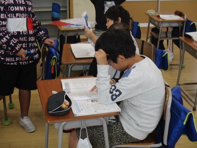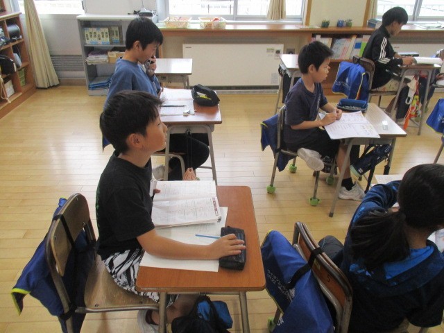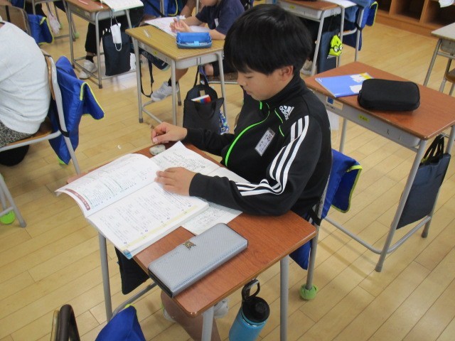 4年生の5時間目は、算数科の学習でした。教科書の練習問題を解いていました。