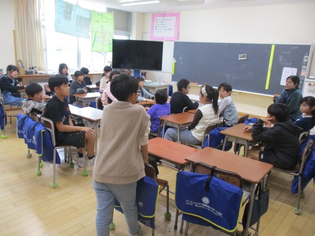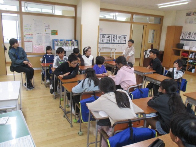 5年2組は、5時間目に振り返りをしていました。ひいらぎタイムに行ったファミリー班での秋の花の苗植えの振り返りを行っていました。
