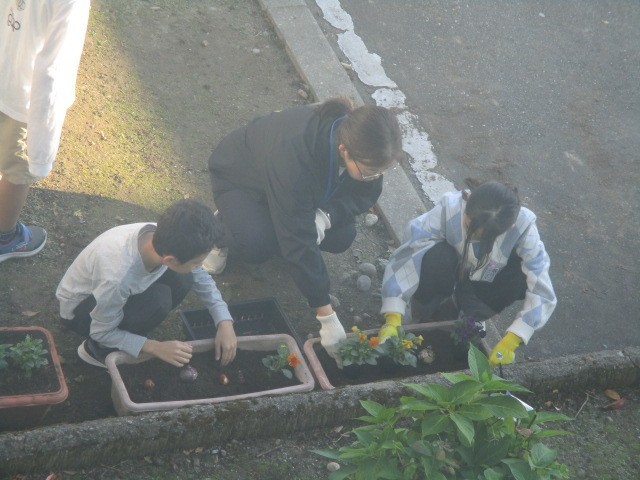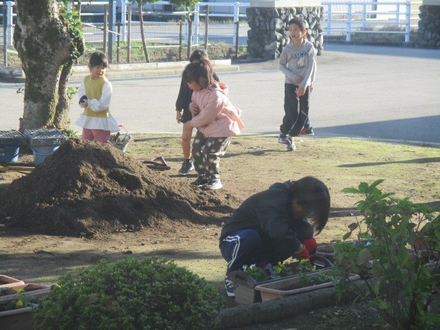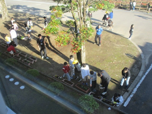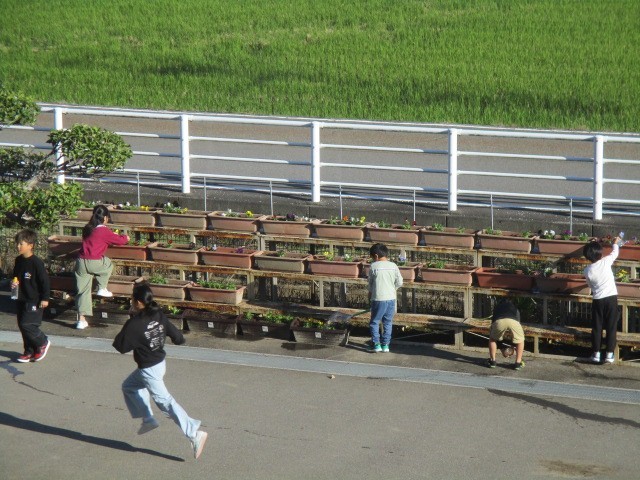 昨日の秋の花の苗植えが終わっていないファミリー班がいくつかあったようで、今日のきらきらタイムは、花の世話をしている人たちがたくさんいました。ありがとうございます。