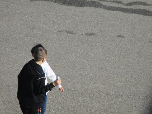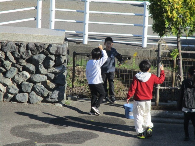 3年生の1時間目は、理科の学習でした。外に出て、日なたと日かけの温度を測っていました。