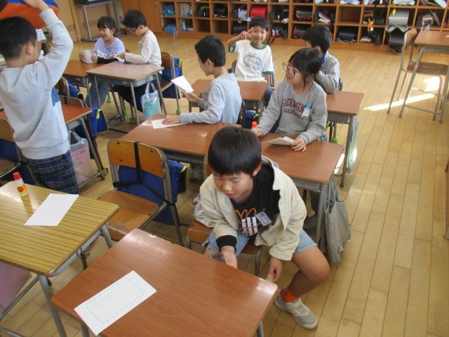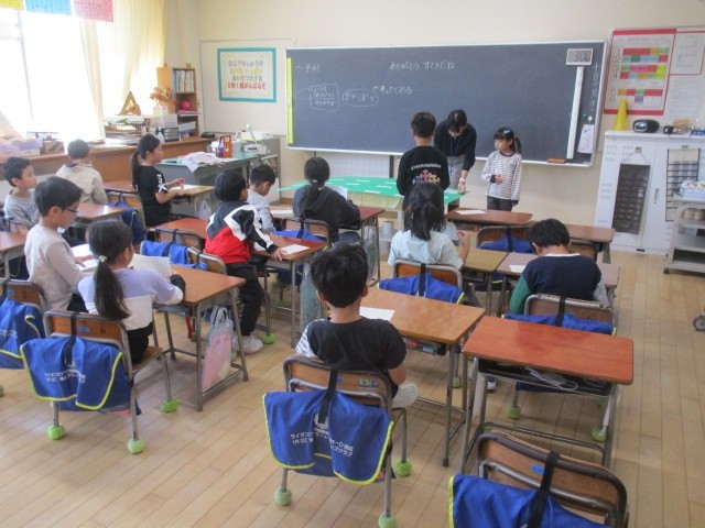2年生は、3時間目に友達のよさ見付けをしていました。