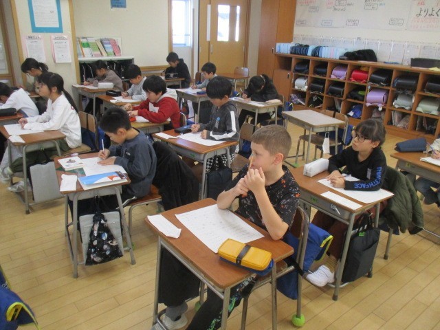 3年生の3時間目は、国語科の学習でした。漢字のプリントをしていました。
