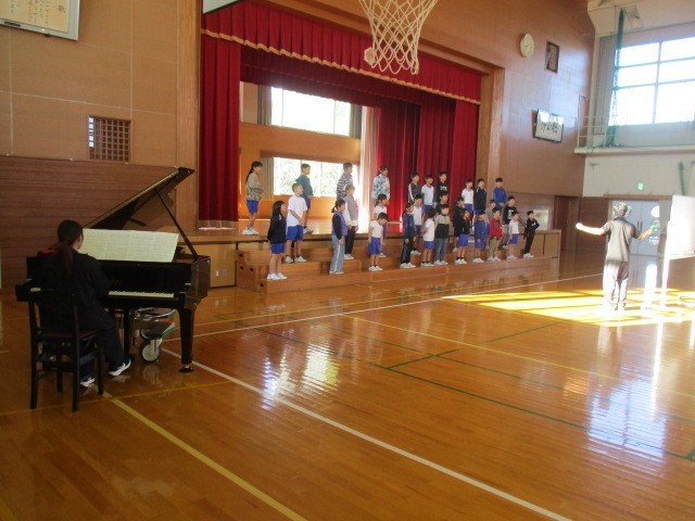 日曜日の地域の「オータムフェスタ」に出演する練習をしていました。出演は、9:35頃です。保護者の皆様、ご協力をよろしくお願いします。