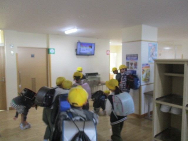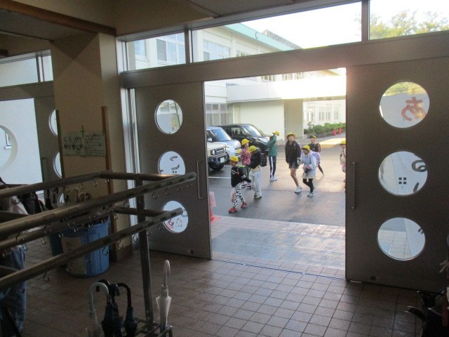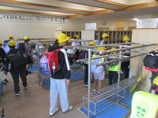 今朝の児童玄関の様子です。今日も日光があたっていました。子供たちが元気に登校してきました。