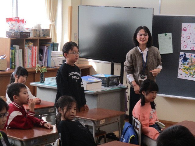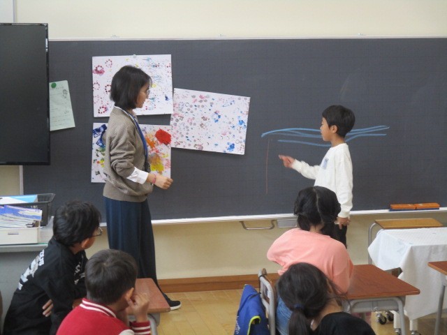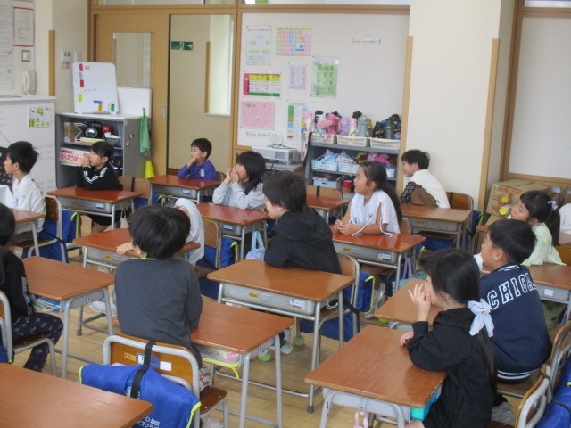2時間目に1年生教室に行くと、何やら一所懸命に説明している人がいました。 その話を聞いて、質問している人もいました。