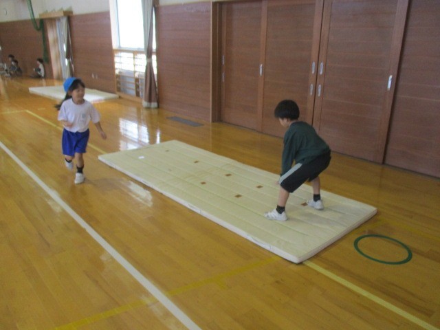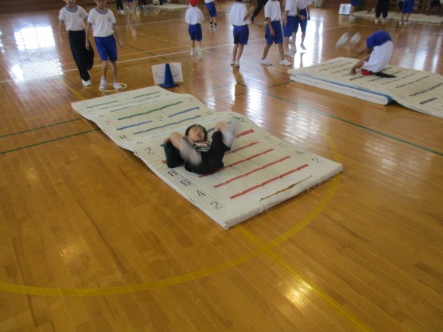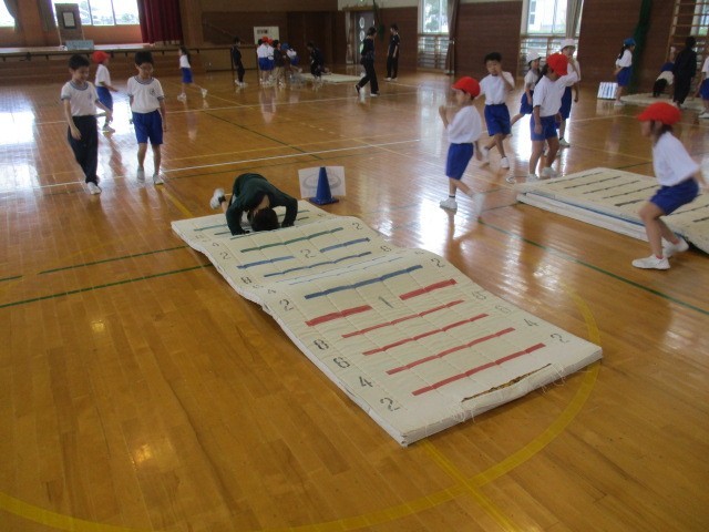 つばめ野級2組の2年生の5時間目は、交流級での体育科の学習でした。マット運動をがんばっていました。