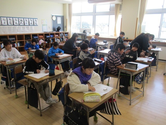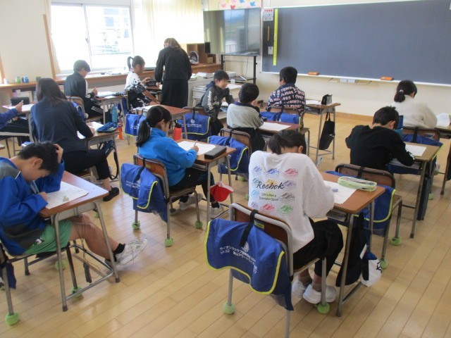 4年生の1時間目は、算数科の学習でした。プリントで確認をしていました。