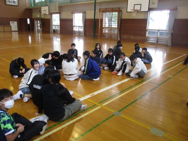 6年生は、3時間目に体育館にいました。この後、行く校外学習(こころの劇場)の準備をして体育館に集まっていました。このあと交流する八幡小学校の6年生とのことを最終打合せをしているみたいでした。