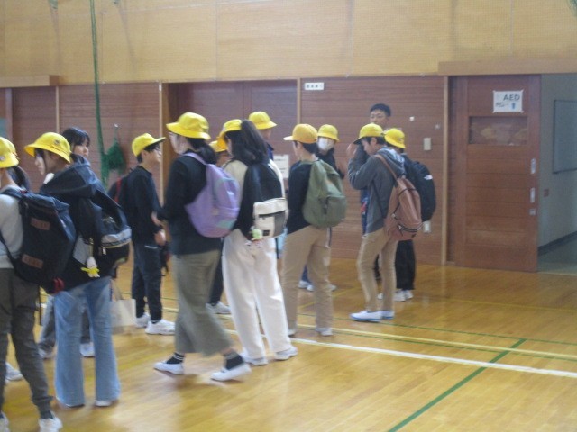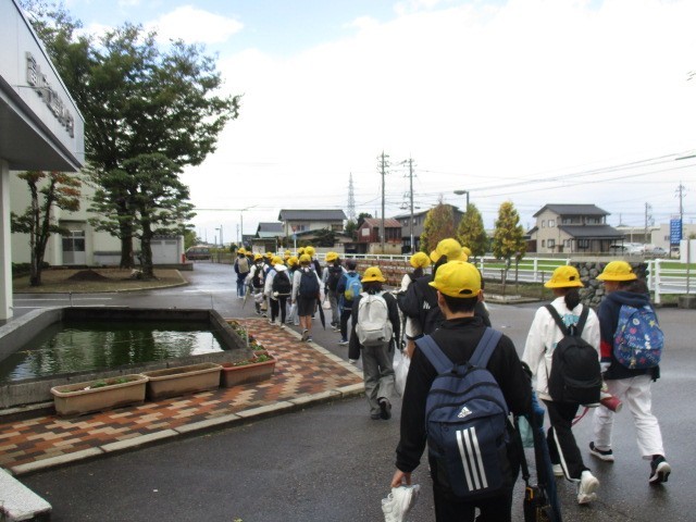 6年生が校外学習(こころの劇場)に出発しました。まずは、一緒に行く八幡小学校へ向かいました。