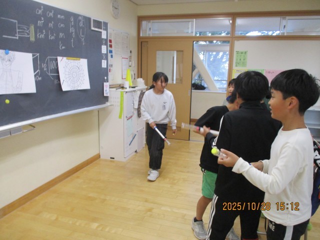 4年生の理科では、閉じ込めた空気の特徴について、空気鉄砲をつかって学習しています。「閉じ込めた空気の体積が小さくなると押すとき強い力が必要だ」「スポンジがまっすぐ、遠くに飛ぶにはどうすればよいのかな」など、様々な考えをもちながら学習しています。