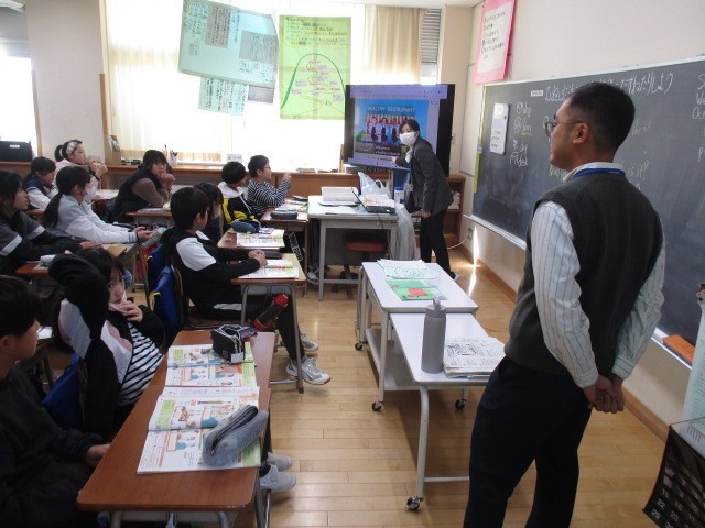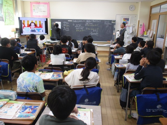 5年生の3時間目は、外国語科の学習でした。1・2組一緒に学習していました。英語で、丁寧に質問したり、値段を尋ねたりする動画を見ながら考えていました。