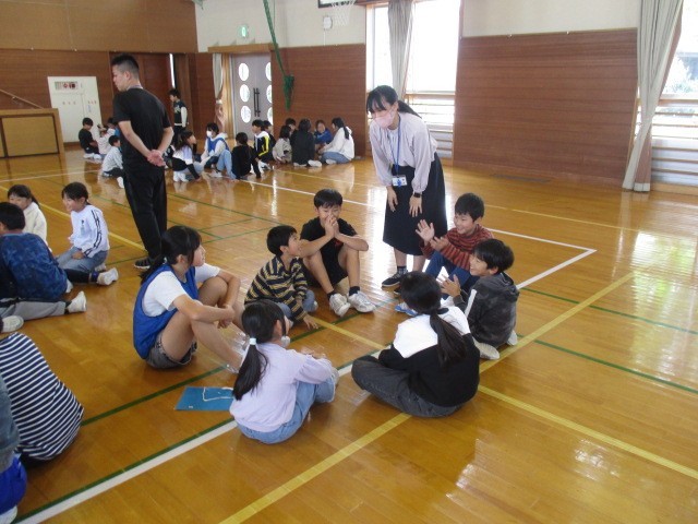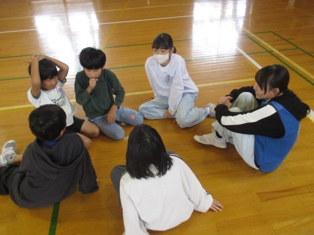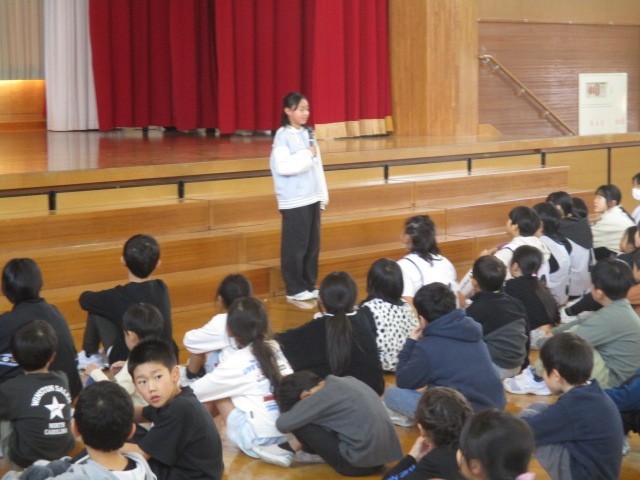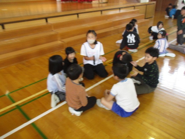 今日のひいらぎタイムは、全校集会の時間でした。「ファミリー班の仲をよくして、一緒に活動する」という目当てで、ゲームを一つしました。班の友達との仲はよくなったのかな?