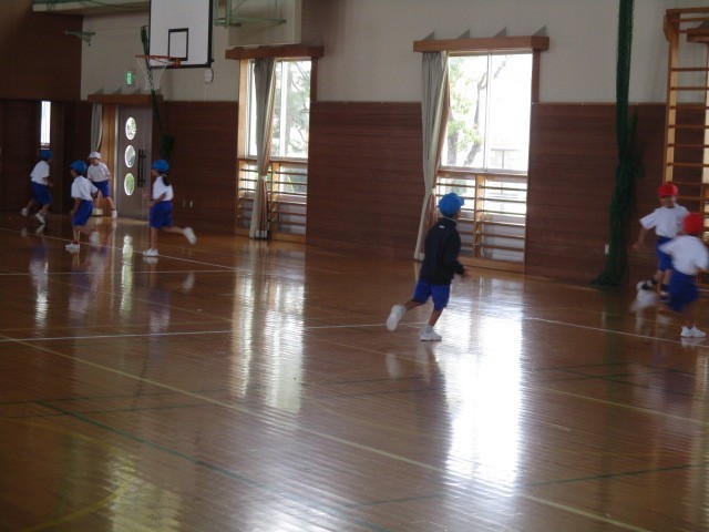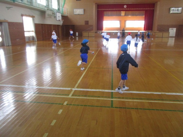 1年生の5時間目は、体育科の学習でした。体育館でおにごっこをしていました。