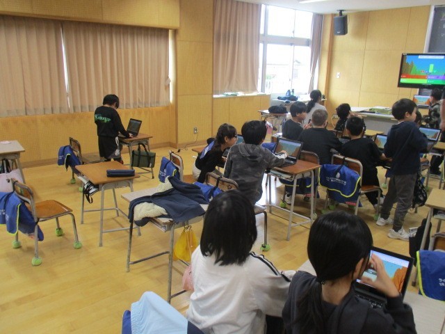 3年生の5時間目は、外国語活動の時間でした。クロームブックを使って、ゲームをしながら英語に親しんでいました。