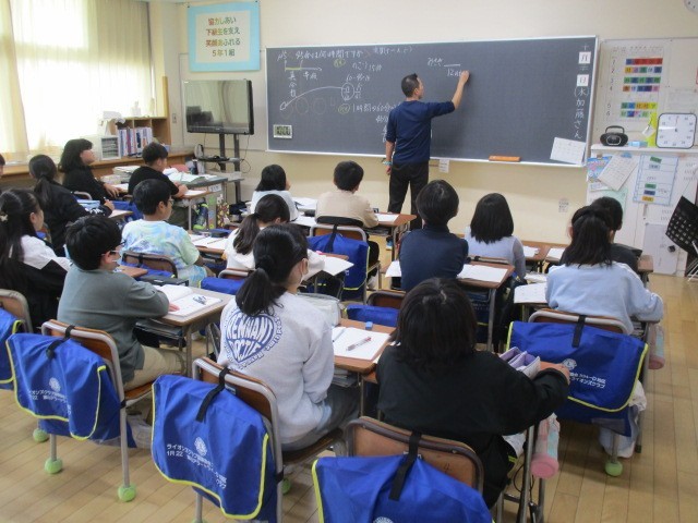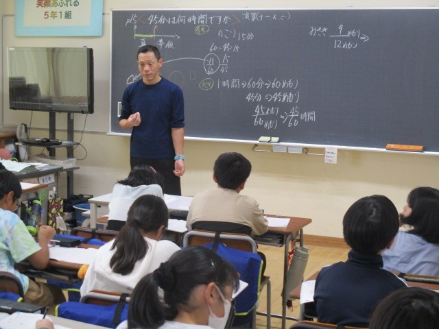 5年1組の5時間目は、算数科の学習でした。45分が何時間なのかを考えていました。