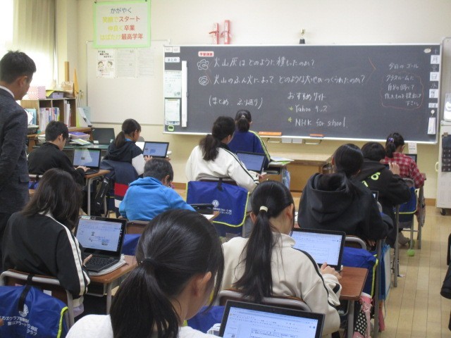 6年生の5時間目は、理科の学習でした。「火山灰」について調べていました。