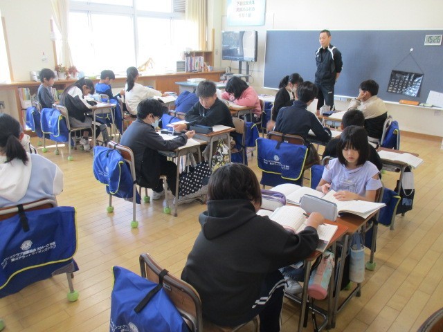 5年1組の1時間目は、国語科の学習でした。「和語」「漢語」「外来語」を教科書の中から探していました。