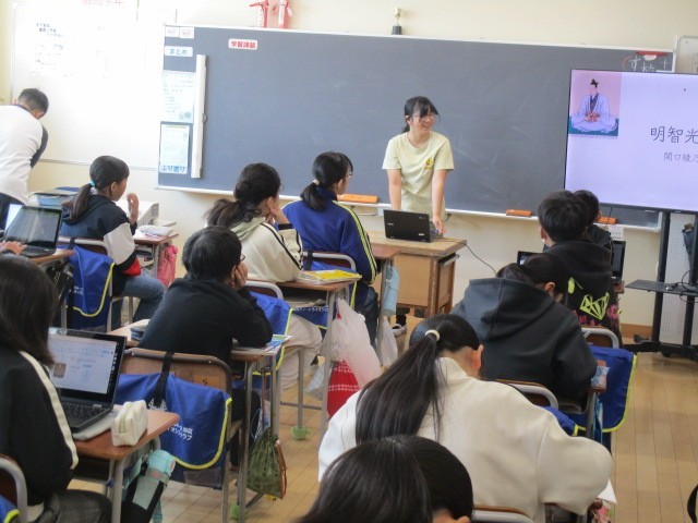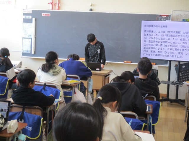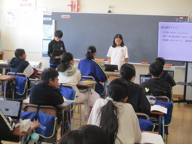 6年生の1時間目は、社会科の学習でした。推し武将を発表していました。ちょうど、発表していた人の推し武将は、「今川義元」「豊臣秀吉」「徳川家康」「明智光秀」でした。