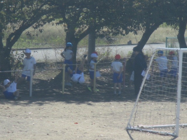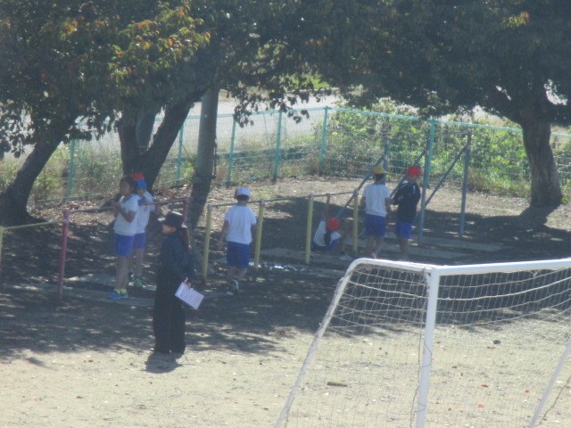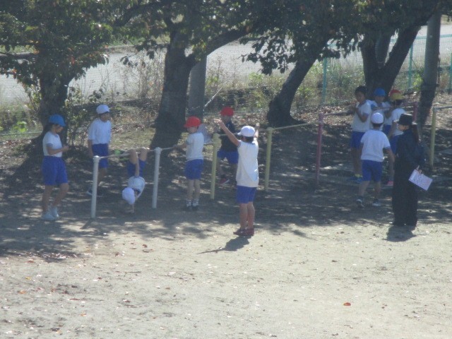 4年生の3時間目は、体育科の学習でした。グラウンドで鉄棒をしていました。