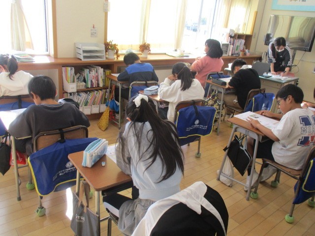 5年1組の5時間目は、社会科の学習でした。テストをしていました。