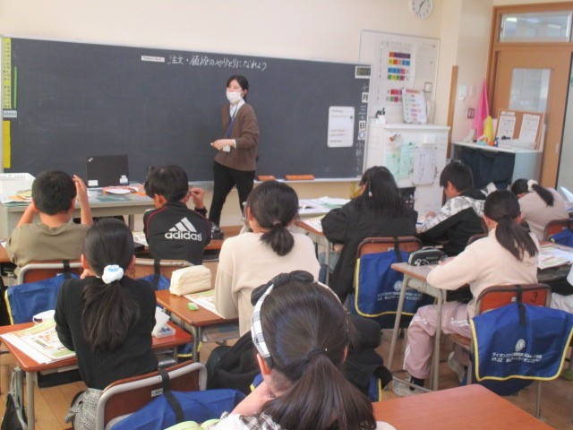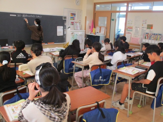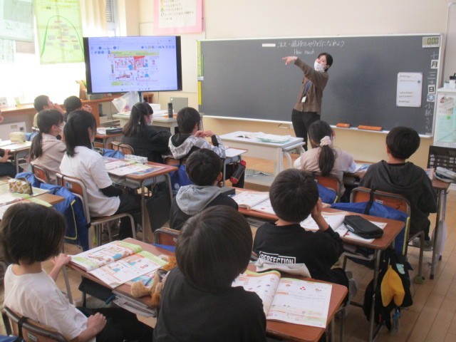 5年2組の5時間目は、外国語科の学習でした。レストランでの注文と値段について、英語で考えていました。